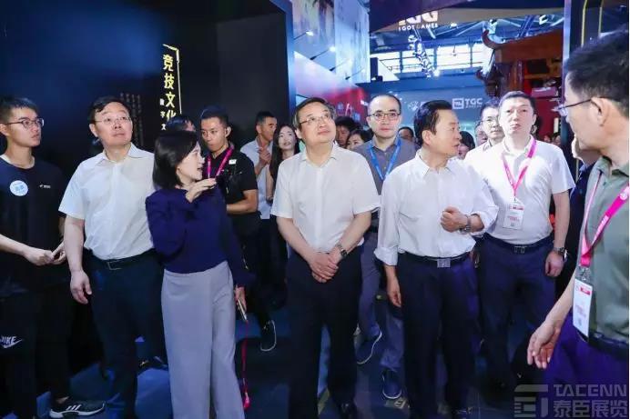在TGC騰訊數字文創展區,騰訊副總裁王波陪同中宣部副部長梁言順等領導詳細了解了騰訊游戲等數字業務在文化傳承、電子競技、文創藝術和未來科技等領域的探索和成果。領導對數字文創在非遺和敦煌文化的傳承上所作出的實踐表示肯定。同時,數字文創與藝術、電競、科技的融合創新也受到在場嘉賓的關注。